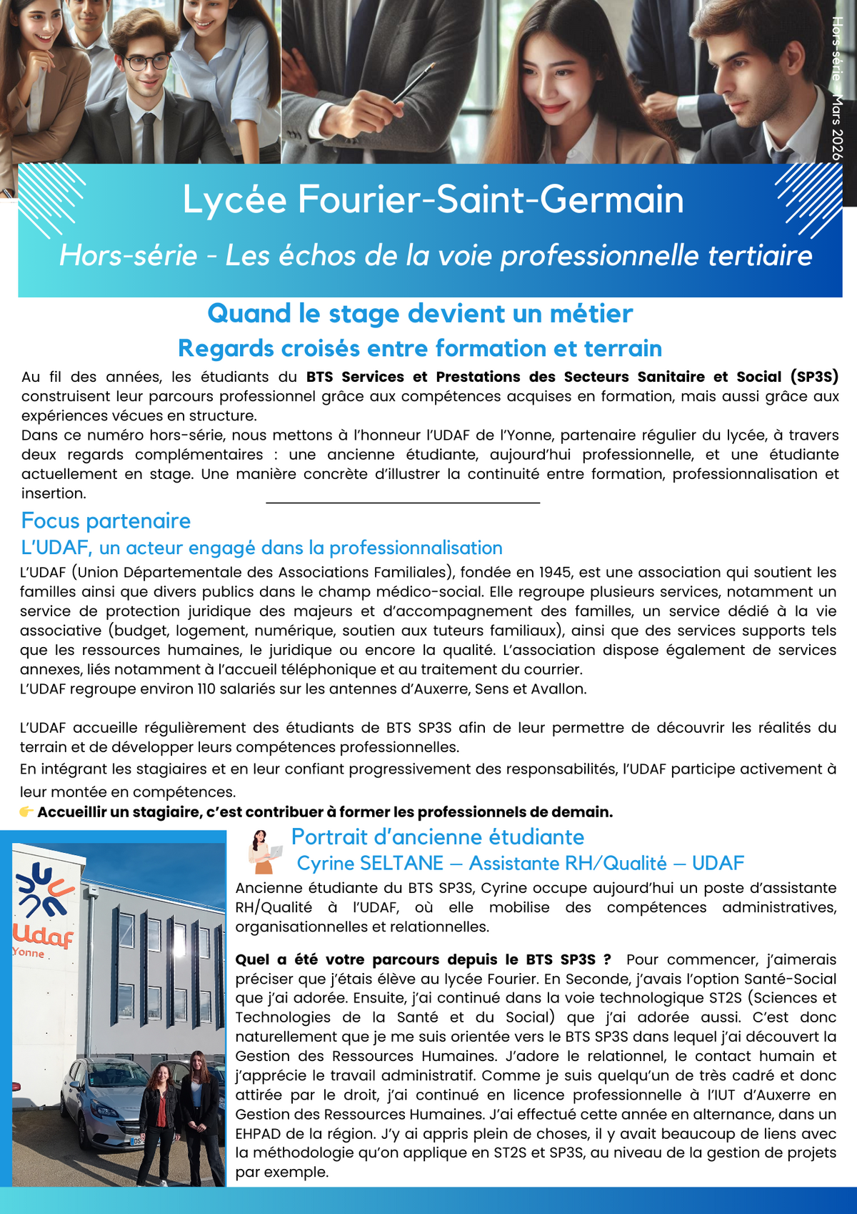 Le jeudi 9 octobre 2025, le site Saint-Germain du lycée Fourier Saint-Germain à Auxerre a accueilli son tout premier "Stage Dating" dédié aux formations (...)